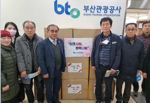 부산관광공사가 지난 20일 부산진구 자유평화로 있는 부산평화시장, 부산자유시장, 철뚝시장 상인들에게 따뜻한 겨울나기를 위해 무릎덮게 1300장을 지원했다고 25일 밝혔다.