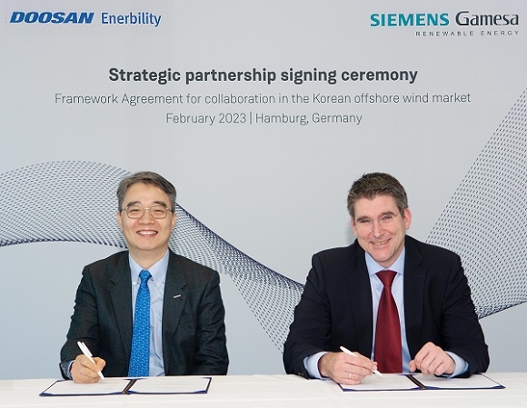 두산에너빌리티가 지멘스가메사(Siemens Gamesa Renewable Energy, 이하 SGRE)와 손잡고 해상풍력 사업 경쟁력을 강화한다.