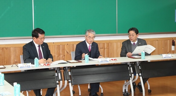 홍태용 김해시장은 지난 7일 김해지혜의바다에서 열린 교육 현안 간담회서 박종훈 경남도교육감과 도의회 박병영 교육위원회 위원장을 만나 긴급한 교육 현안을 논의했다.