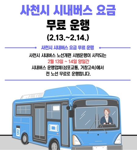 한편 사천시는 복잡하고 어려운 시내버스 노선을 누구나 쉽게 알 수 있도록 노선을 전면 개편, 2월 13일부터 28일까지 시범운행을 거쳐 3월 1일 본격 시행에 나선다.