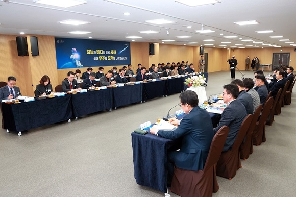 간담회는 우주항공청 사천 설립 지원, 경남항공국가산업단지 조성 등 7개 주요 현안사항과 17개 건의사항에 대한 업무보고와 함께 질의응답 순으로 진행됐다.