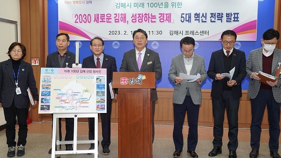 경남 김해시가 13일 민선 8기 시의 경제정책 방향과 전략을 담은 '2030 새로운 김해, 성장하는 경제' 5대 혁신 전략을 발표했다.