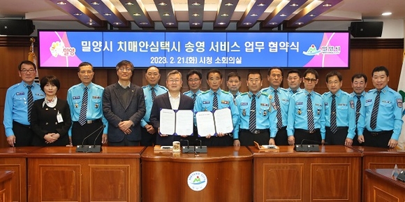 경남 밀양시는 21일 (사)전국모범운전자연합회 경남밀양지회와 '치매안심택시 송영 서비스 업무 협약식'을 가졌다.