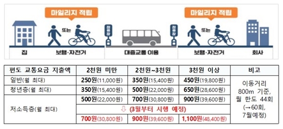 3월부터는 저소득층의 회당 적립액을 기존 500~900원에서 700~1100원으로 확대하고, 4월부터는 삼성페이 등 모바일로도 알뜰교통카드 사용이 가능해진다. 7월에는 마일리지 적립한도를 현행 월 44회에서 60회로 상향 조정하고, 발급 카드사를 기존 신한·하나·우리·티머니·로카·DGB 6개사에 이어 삼성·현대·국민·농협·BC까지 총 11개사로 늘려나간다. 월 한도가 늘어남에 따라 월 1~4만 원 수준이었던 절감액을 월 1만 5천원~6만 6천원 수준으로 늘린다는 계획이다.