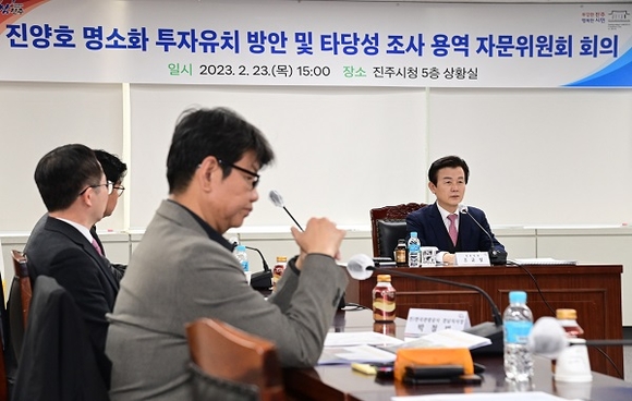 경남 진주시는 23일 시청 5층 상황실에서 '진양호 명소화 투자유치 방안 및 타당성 조사 용역 자문위원회'를 가졌다.