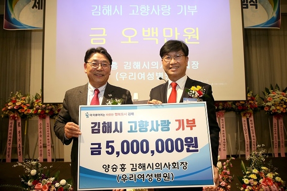 이날 행사에서는 고향사랑 기부와 장학금 기탁식이 있었다. 고향사랑 기부는 ▲신임 회장인 양승홍 우리여성병원장 500만원 ▲노경환 김해굿모닝병원장 500만원, 장학금의 경우 ▲김해시의사회 1000만원 ▲도창호 동김해내과의원장 1000만을 김해시에 기탁했다.