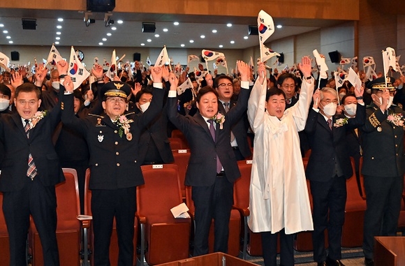 경남도는 1일 오전 도청 신관 대강당에서 독립유공자 유가족, 보훈단체장, 일반 도민 등 500여 명이 참석한 가운데 제104주년 3·1절 기념식을 가졌다.