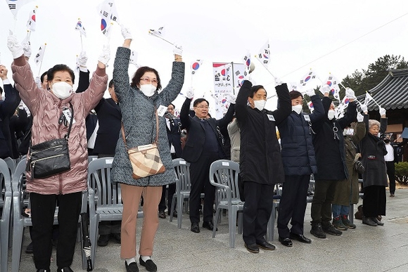 이어서 지역 국회의원, 도·시의원, 보훈단체장 등 200여 명이 참석한 가운데 추념식을 열어 104년 전 온 민족이 하나 되어 외쳤던 대한독립만세를 삼창하며 그날의 숭고한 희생을 기리는 뜻깊은 자리가 됐다.