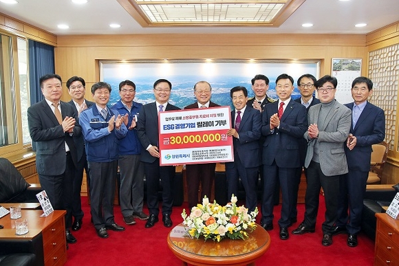 이날 홍남표 시장을 비롯해 (유)상화도장개발 이년호 대표이사, 대호테크(주) 대표이사 정영화 회장 등 현재까지 기부한 창원상의 소속 기업 대표이사들이 한자리에 모였다.