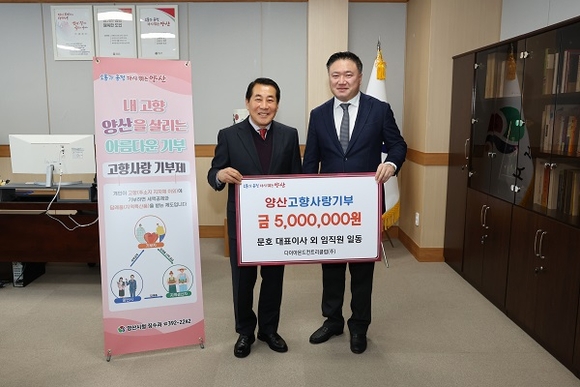 다이아몬드컨트리클럽(주) 문호 대표이사 외 임직원이 경남 양산시에 고향사랑기부금 최고액인 500만원을 기부했다.