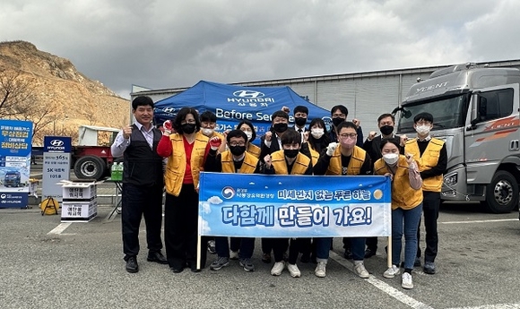 이날 행사는 화물차주를 대상으로 '미세먼지 줄이기' 동참 캠페인을 추진하고, 운행차 배출가스 무상점검 등 차량 관리를 집중 지원했으며, 낙동강청, 부산지방해양수산청, 부산시, 창원시, 부산항만공사(BPA), 현대자동차(주)가 함께 참여했다.