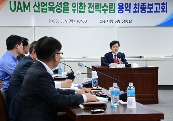 경남 진주시는 지난 9일 시청 5층 상황실에서 조규일 시장, 자문위원, 전담기관, 용역사 및 관련 부서 공무원이 참석한 가운데 'UAM 산업육성을 위한 전략수립 용역' 최종보고회를 가졌다.