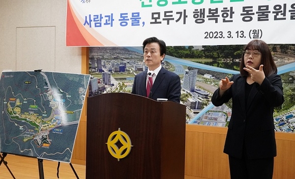 조규일 시장은 13일 시청 브리핑룸에서 기자회견을 열어 진양호동물원 이전의 필요성과 이전 대상지, 조성 방향 등에 대한 설명과 함께 “대한민국 대표 동물행동풍부 생태동물원으로 조성할 계획”이라고 밝혔다.