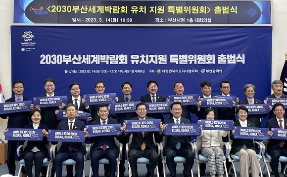부산시가 14일 오전 10시 30분 시청 1층 대회의실에서 대한민국시도지사협의회 ‘2030부산세계박람회 유치지원 특별위원회’ 출범식을 개최했다.