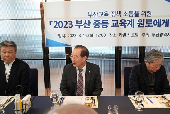 부산시교육청이 14일 라발스 호텔에서 하윤수 교육감을 비롯한 중등 교육계 원로 10명, 중등교육과장 등이 참석한 가운데 ‘2023 부산교육, 원로에게 묻다’ 행사를 개최했다고 밝혔다.