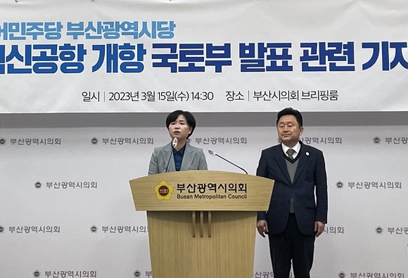 민주당 부산시당은 15일 오후 부산시의회 브리핑룸에서 국토부의 가덕신공항 로드맵·공법 발표 관련 기자회견을 열었다. 이날 자리에는 최인호 국회의원(부산 사하갑)을 비롯해 민주당 서은숙 부산시당 위원장, 서지연 부산시의회 의원 등 당원 10여명이 참석했다.