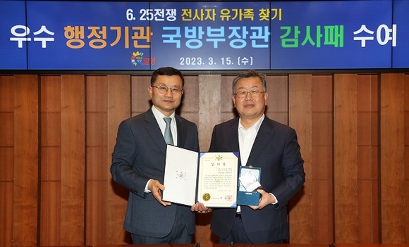 경남 밀양시는 국방부에서 추진하는 6․25전쟁 전사자 유가족 찾기 활동 지원 우수행정기관으로 선정됐다고 15일 밝혔다.