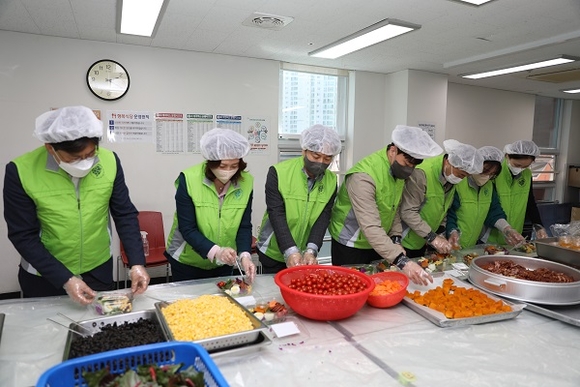부산시설공단은 16일 부산진구노인복지관에서 부산은행 연지동지점과 함께 지역 독거노인 등 취약계층 어르신을 위해 총 600인분의 샐러드 재료구매비(300만원) 기부와 포장 봉사활동을 진행했다.