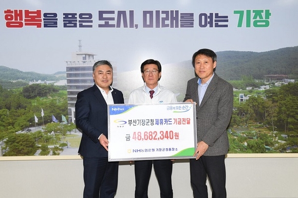 ‘NH농협은행 기장군청출장소’은 매년 기장군청 클린카드와 보조금카드 사용에 따른 적립 기금을 전달해 왔으며, 적립된 기금은 지역사회 발전과 군민 복지를 위한 재원으로 활용하고 있다.