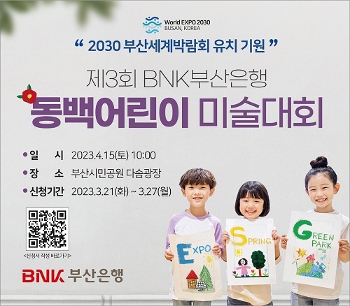 BNK부산은행이 내달 15일 부산시민공원 다솜광장에서 2030부산세계박람회 유치를 기원하는 제3회 동백어린이 미술대회를 개최한다고 21일 밝혔다.