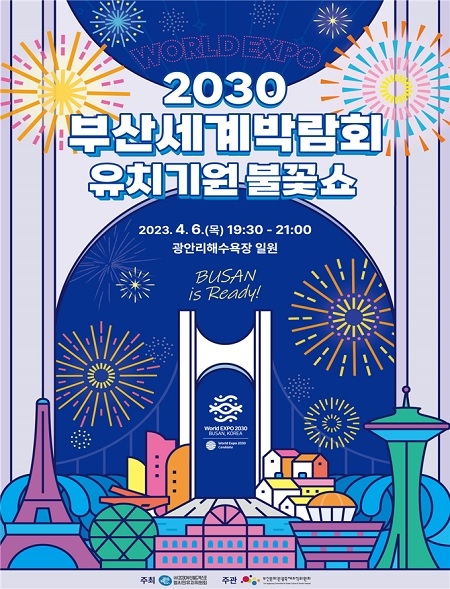 부산시가 2030세계박람회 유치 의지를 표현한 ‘2030부산세계박람회 유치기원 불꽃쇼’를 다음달 6일 오후 7시 30분부터 오후 9시까지 광안리해수욕장에서 개최한다고 밝혔다.