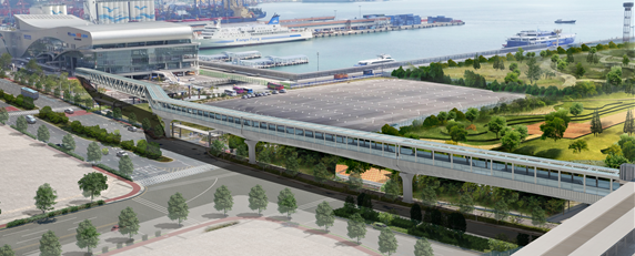 추가로 개통한 공중보행로 구간은 길이 263m, 폭 6.8m로 양방향 무빙워크(전동 보도)가 설치되어 있으며 선사 운항 스케줄에 따른 부산항 국제여객터미널 이용객 편의를 고려해 오전 7시부터 오후 9시까지 개방할 예정이다.
