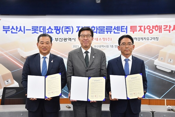 이날 투자협약 체결식에는 박형준 시장, 롯데쇼핑 김상현 총괄대표이사와 기업 임직원, 김기영 부산진해경제자유구역청장 등이 참석했다.
