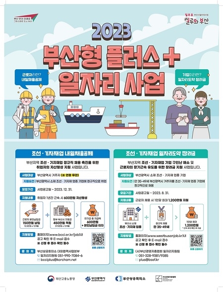 부산시가 지역 조선·기자재업과 관광·마이스업 분야의 일자리 불일치 해소를 위해 ‘부산형 플러스 일자리 사업’을 본격 개시한다고 23일 밝혔다.