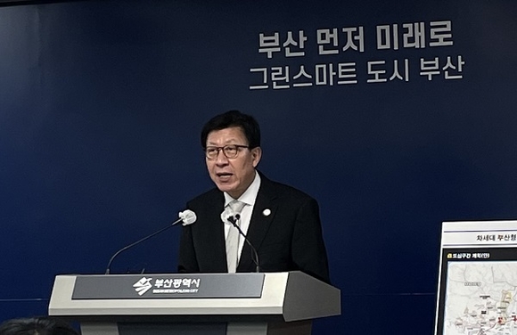 박형준 부산시장은 23일 오전 시청 브리핑룸에서 기자회견을 열고 차세대 부산형 급행철도 사전타당성 검토용역 결과를 발표하며 앞으로의 추진계획에 대해 설명했다.