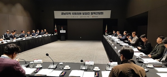 이날 간담회는 김영선 의원(창원의창구), 최형두 의원(창원마산합포구), 윤한홍 의원(창원마산회원구), 이달곤 의원(진해구), 박대출 의원(진주갑), 정점식 의원(통영고성), 조해진 의원(밀양의령함안창녕), 서일준 의원(거제), 윤영석 의원(양산갑), 김두관 의원(양산을), 김태호 의원(산청함양거창합천) 등 지역구 국회의원 보좌진이 대거 참석했다.