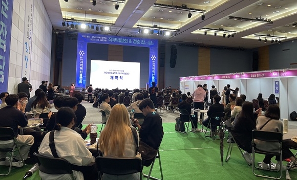 울산·경남지역혁신플랫폼 총괄운영센터는 23, 24일 양일간 창원컨벤션센터 컨벤션홀에서 '제2회 USG 취업이룸 직무박람회&청춘잡(JOB)담(談)' 행사를 열고 있다.