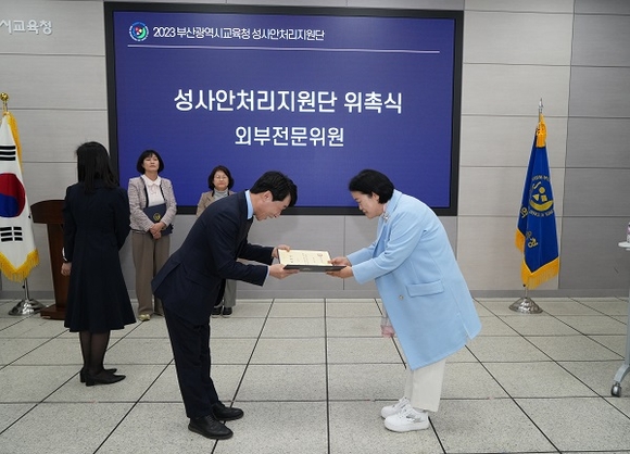 부산시교육청이 28일 오후 3시 시교육청 별관 국제회의실에서 성사안처리지원단 30여 명이 참석한 가운데 ‘2023학년도 성사안처리지원단 위촉식 및 역량강화 워크숍’을 개최했다.