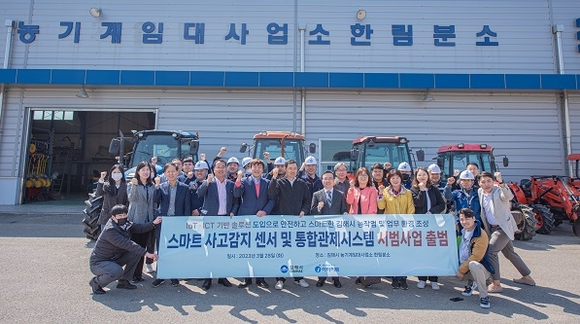시는 중소벤처기업부 연구개발 과제에 선정된 시스템 개발업체인 ㈜아이하트와 함께 지난 2년간 필드 테스트 등을 진행해 왔으며, 지난해 11월 임대농기계 사고감지 관제시스템 무상 시범사업을 도입하기로 업무협약을 체결했다.