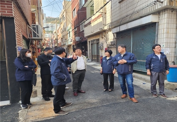 부산시의회 기획재경위원회 김광명‧김태효‧김형철‧반선호‧배영숙‧성창용‧황석칠 의원이 28일 부산 민생현안 지역인 정책이주지의 열악한 주거환경과 지역별 문제점을 살피고 제도적 문제점과 개선방안을 찾기 위해 부산 정책이주지 4개 지역(반여지구, 용호지구, 개금지구, 신평지구)을 방문했다.