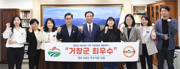 거창군은 경남도가 18개 시군에 대해 실시한 '2023년(`22년 실적) 시군 주요업무 합동평가'에서 정성·정량평가부문 모두 군부 1위를 달성, 5년 연속 우수기관으로 선정됐다고 3일 밝혔다.