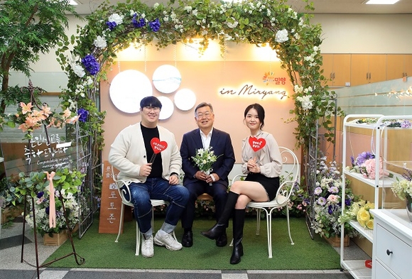 경남 밀양시는 시청 민원실 내 시민들의 힐링 고품격 공간으로 새롭게 재탄생한 혼인신고 포토존에서 '시장님과 함께하는 기념 촬영 이벤트'를 진행해 뜻깊은 추억을 남겼다고 5일 밝혔다.