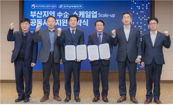 남부발전은 6일 부산국제금융센터 대회의실에서 부산 중기청과 부산지역 대·중소기업 상생협력 및 중소기업 성장 촉진을 골자로 ‘스케일업(Scale-Up) 공동사업 지원’을 위한 업무협약을 체결했다고 밝혔다.