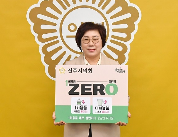 진주시의회 양해영 의장이 지난 7일 '1회용품 제로 챌린지'에 참여해 친환경 의회 구현에 힘쓰겠다고 약속했다.