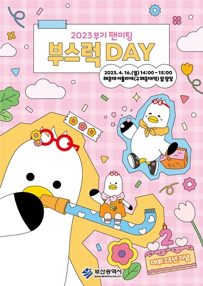 부산시가 시 소통 캐릭터 ‘부기’의 데뷔 2주년을 기념해 팬미팅을 비롯한 다양한 이벤트를 개최한다고 11일 밝혔다.