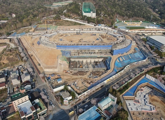 이런 가운데 대회 개․폐회식과 육상 경기가 열릴 김해종합운동장 건립공사도 순항 중이다. 지하 5층~지상 3층, 연면적 6만 8370㎡, 관람석 1만 5066석 규모로 건립하며 지난 2일 기준 공정률 33.5%로 내년 4월 준공 예정이다. 총 사업비는 1793억원(국비 200억, 도비 390억, 시비 1203억)이다.
