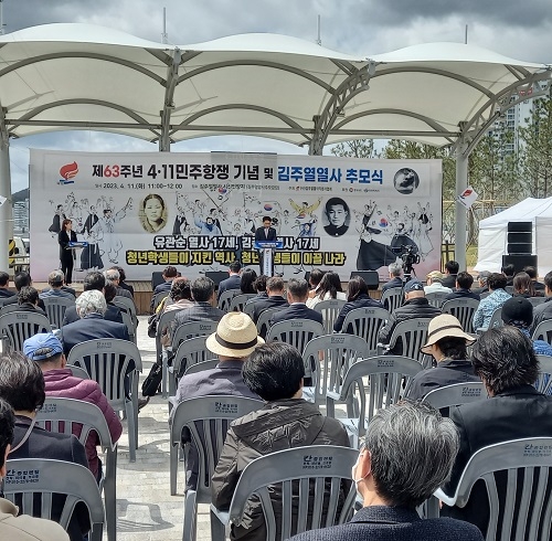 '제63주년 4.11민주항쟁 기념 및 김주열 열사 추모식'이 11일 창원 마산합포구 김주열 열사 시신인양지에서 열렸다.