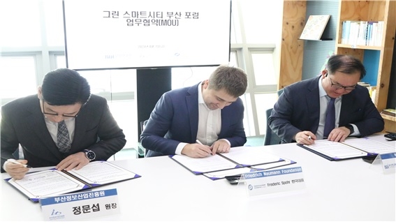 부산정보산업진흥원과 부산연구원, 프리드리히 나우만 재단이 분기별 그린 스마트시티 부산 포럼을 공동 주관하며 성공적 포럼 개최를 위해 상호협력하기로 12일 밝혔다.