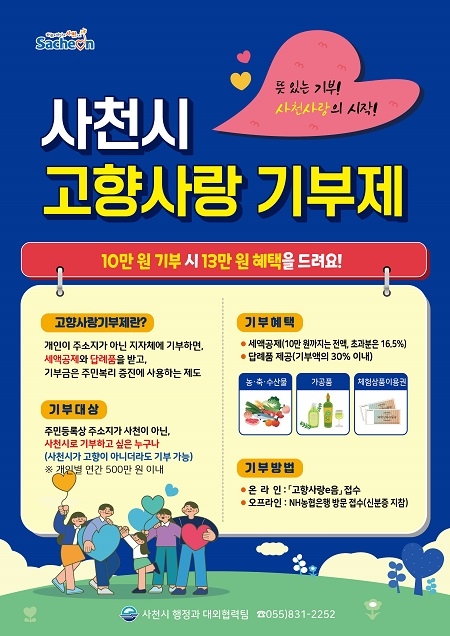 경남 사천시가 고향사랑기부제의 빠른 정착과 활성화를 위해 고향사랑기부제 답례품을 확대했다.