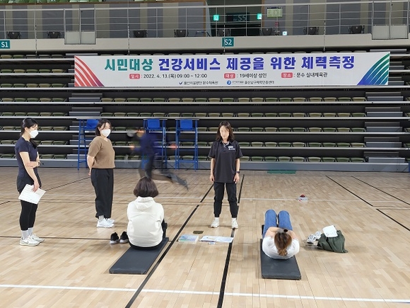 울산시설공단 문수체육관이 지난 13일 울산남구체력인증센터와 함께 시민 대상 국민체력100 체력측정·맞춤운동 처방서비스 행사를 개최했다.