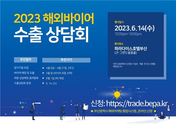 한편, 상담회 참가를 희망하는 기업은 부산시 해외마케팅 통합시스템 누리집을 통해 신청하면 된다.