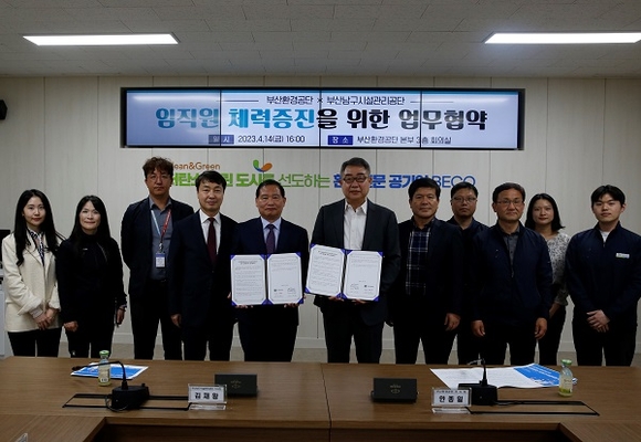 부산환경공단이 공단 임직원의 체력증진을 위해 지난 14일 공단 본부에서 부산시남구시설관리공단과 업무협약을 체결했다고 17일 밝혔다.