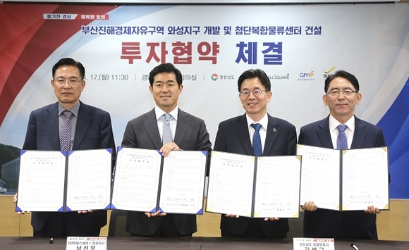 부산진해경제자유구역청은 17일 경남도청 도정회의실에서 도, ESR켄달스퀘어㈜, 경남신항만㈜와 함께 와성지구 개발 및 첨단복합물류건립의 성공적인 추진을 위한 투자협약(MOU)을 체결했다고 밝혔다.