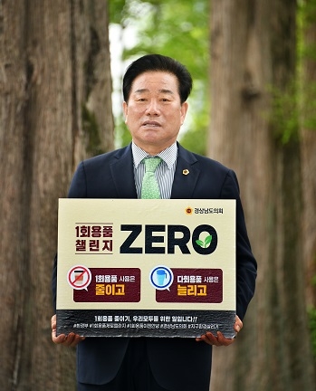 김진부 경남도의회 의장이 18일 일상생활 속 일회용품 사용 줄이기 실천을 약속하는 환경부 주관 '1회용품 제로 챌린지'에 동참했다.