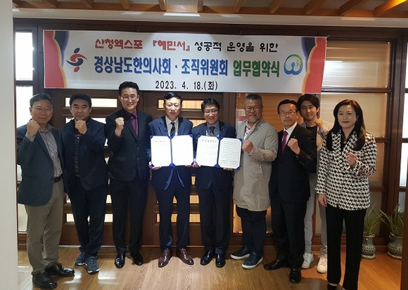 산청세계전통의약항노화엑스포 조직위원회는 18일 창원시 소재 이병직한의원에서 경남한의사회와 2023산청엑스포의 무료 한의진료 프로그램인 '혜민서'의 성공적인 운영을 위한 업무협약을 체결했다.