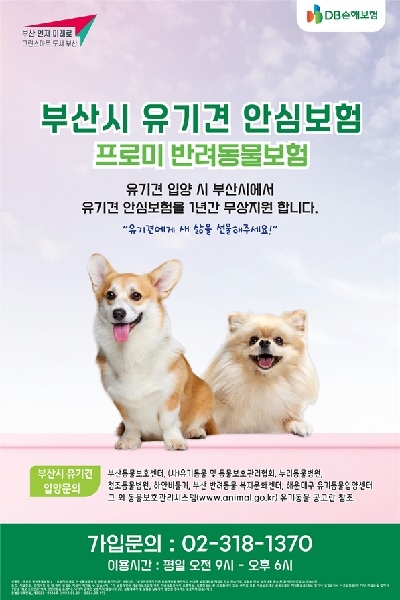 부산시가 오는 21일부터 부산시 소재 유기동물보호센터에서 유기견을 입양한 가족에게 1년간 펫보험을 무료로 지원하는 ‘2023년 유기동물 펫보험 지원사업’을 시행한다고 밝혔다.
